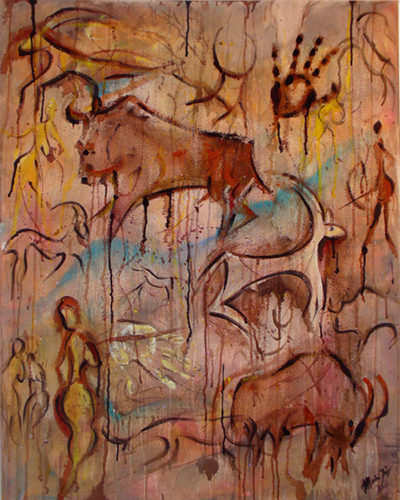 Kommunikation im Zeitfluss II / Mischtechnik auf Leinwand / 2007 / 80x100cm