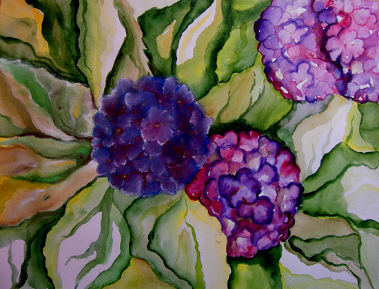 Hortensie / Aquarell und Pastellkreide / 2004 / 30x40cm