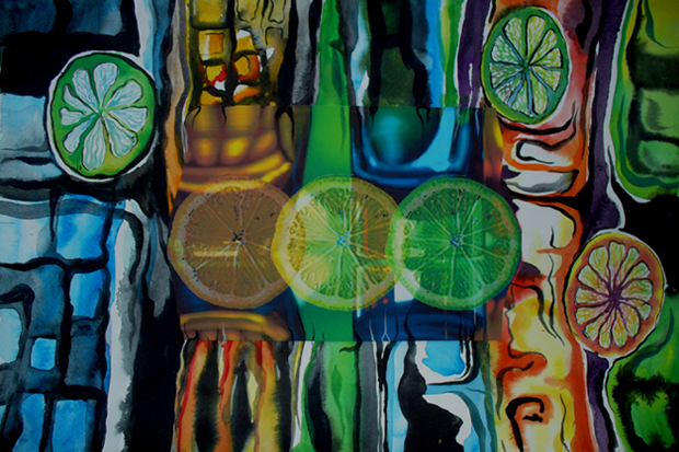 Cocktails / Collage, bearbeitete Fotografie und Aquarell/ 2008 / 40x50cm