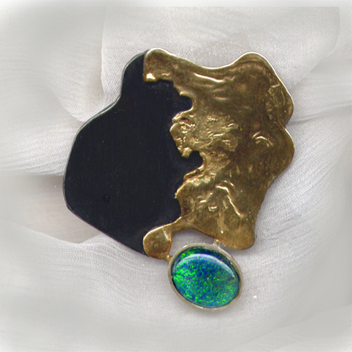 Ansteckschmuck / Gold, geschwärztes Silber, Opal